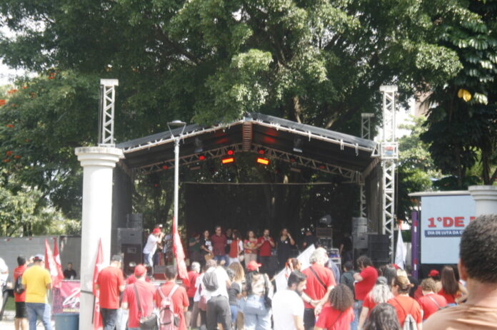 Com bandeiras vermelhas, faixas e palavras de ordem, o ato celebrou a força da luta coletiva e da cultura periférica como instrumentos de resistência e transformação social.