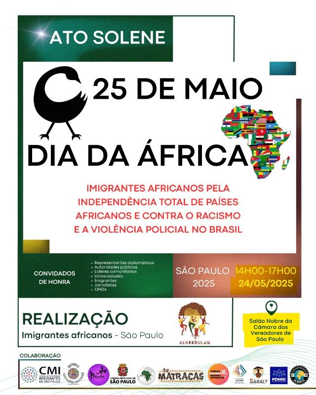 “Imigrantes Africanos pela Independência Total de Países Africanos e Contra o Racismo e a Violência Policial no Brasil”, o evento busca ampliar o debate sobre os desafios enfrentados pela população negra e imigrante em solo brasileiro.