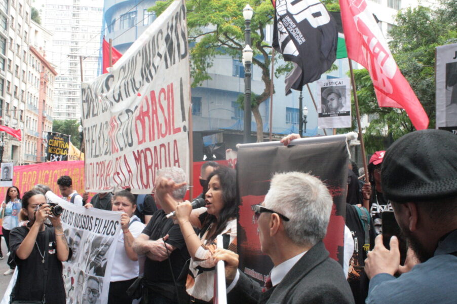 Após o ato inicial, o grupo seguiu em caminhada pelas ruas do centro, entoando palavras de ordem e discursos emocionados de familiares e lideranças sociais. A manifestação contou ainda com a presença de movimentos de direitos humanos, coletivos de periferia e pastorais sociais.