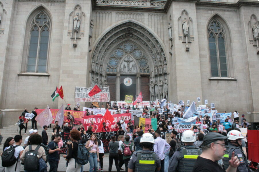 O centro de São Paulo foi palco, nesta quarta-feira (29), de um forte ato político e social em defesa da vida e contra a violência policial. O Ato Unificado Contra a Violência e a Impunidade Policial reuniram cerca de 80 pessoas em frente à Catedral da Sé, em um momento de emoção, dor e resistência.