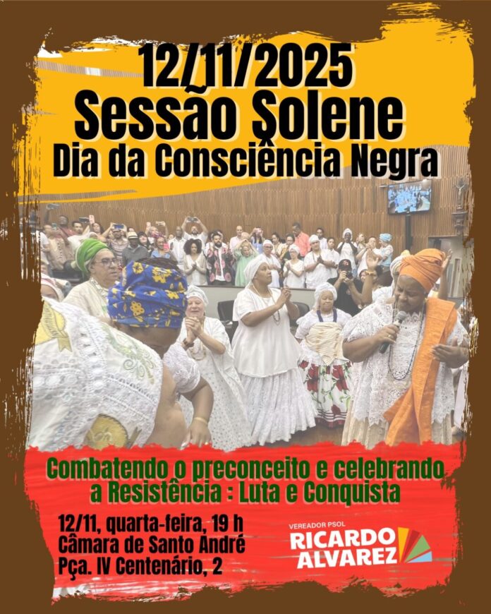 No próximo dia 12 de novembro de 2025, a Câmara Municipal de Santo André será palco de uma Sessão Solene em celebração ao Dia Nacional da Consciência Negra, uma iniciativa do mandato do vereador Ricardo Alvarez (PSOL). O evento, marcado para as 19h, na Praça IV Centenário, nº 2, promete ser um importante momento de reconhecimento, resistência e celebração da cultura afro-brasileira.
