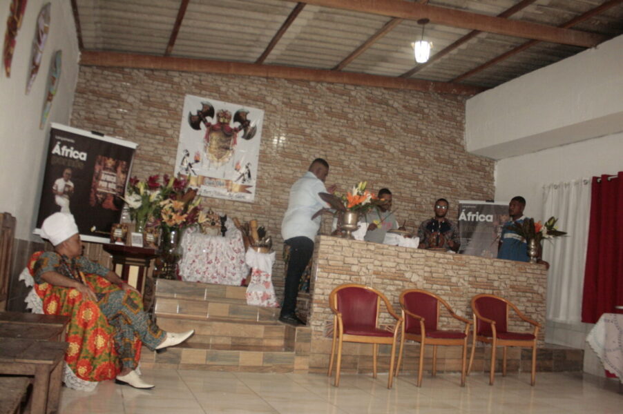 Desde a entrada do Ilê, decorada com máscaras africanas e o letreiro de boas-vindas, já era possível sentir o clima de reverência. A celebração teve início com cânticos e danças que homenagearam Oyá e todo o panteão de orixás, em um ambiente vibrante de energia, cores e movimento.