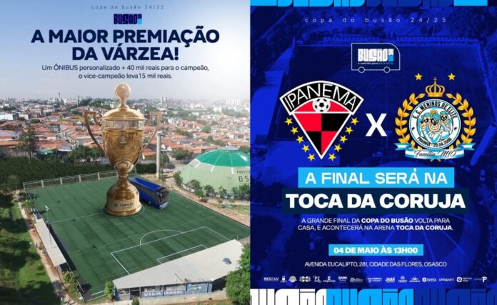 A tradicional Copa do Busão, edição 2024/2025, chega à sua grande final com um duelo que promete agitar os amantes do futebol de várzea: Ipanema FC enfrenta o E.C. Meninos de Elite no próximo sábado, dia 4 de maio, às 13h00, na Arena Toca da Coruja, localizada na Avenida Eucalipto, 281, Cidade das Flores, Osasco.