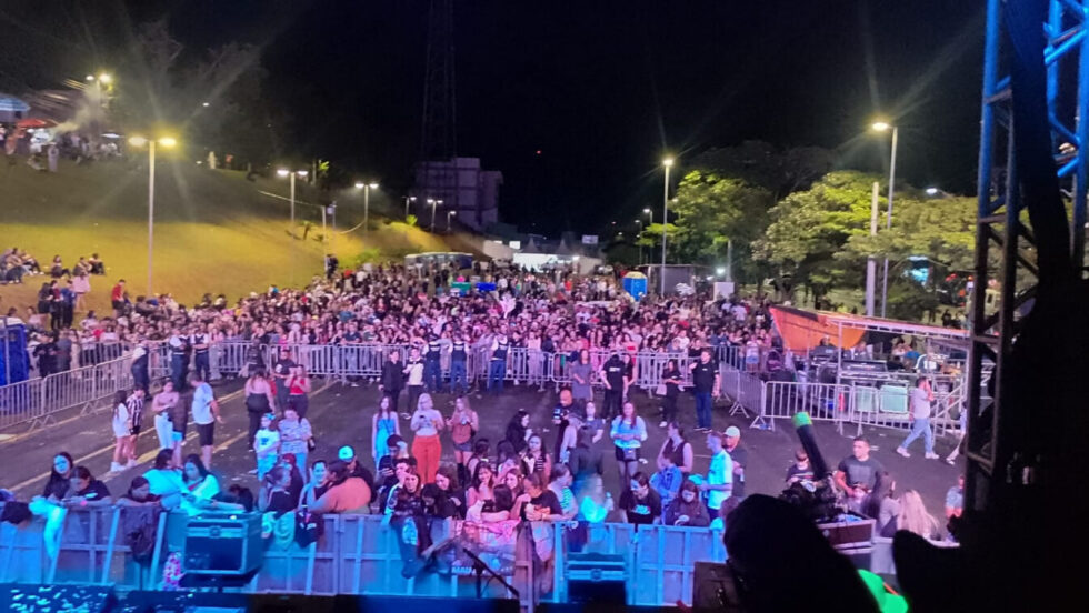 No palco, artistas com Maiara e Maraisa conduzem o espetáculo sob o tema visual dos “170 anos – A história que nos une”, uma mensagem institucional que busca reforçar pertencimento e identidade coletiva.