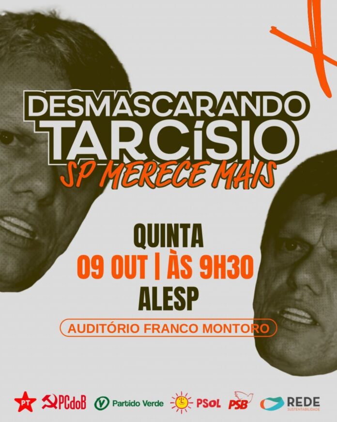 Na Manhã esta quinta-feira, 9 de outubro, às 9h30, o Auditório Franco Montoro, na Assembleia Legislativa do Estado de São Paulo (ALESP), será palco de um importante ato político: “Desmascarando Tarcísio — SP Merece Mais!”.