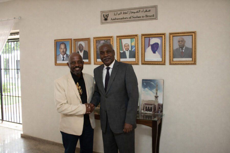 O encontro ocorreu esta Manhã 12/03/2026 na sede diplomática sudanesa na capital federal e reuniu representantes políticos, lideranças sociais e integrantes de movimentos ligados à pauta da igualdade racial e da cooperação internacional. O encontro mostra momentos de diálogo institucional, cumprimentos protocolares e oficial os participantes da recepção diplomática e aproximação política.