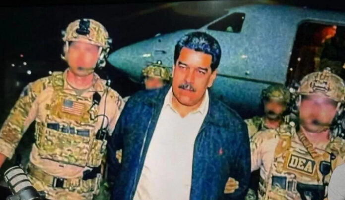 Segundo a declaração do republicano, divulgada em tom triunfal, Maduro e Flores teriam sido detidos, algemados e posteriormente expulsos da Venezuela, sob custódia de forças norte-americanas. As imagens que circulam nas redes sociais — incluindo a que acompanha esta reportagem — mostram Nicolás Maduro escoltado por agentes fortemente armados, em um cenário que remete a operações de alto risco conduzidas por forças especiais dos Estados Unidos.