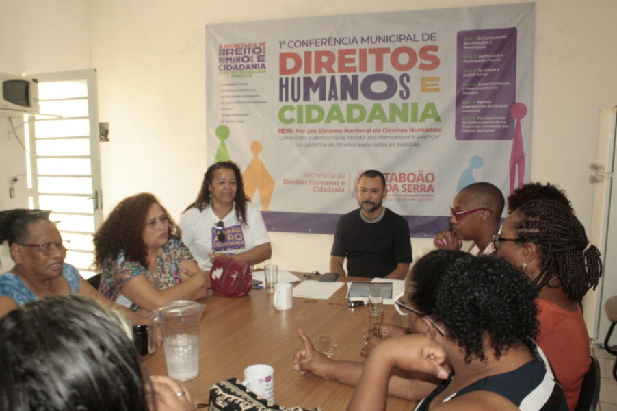 Participaram da reunião a Sehora Jacira Porfirio: Coordenadora Municipal de Igualdade Racial, o Secretário de Direitos Humanos e Cidadania Pro Moreira , além das expositoras: Carla Sancho, Geisa, Andreza, Berenice, Maria José, Mara Regina Tibúrcio, Evânia Mendes e Elisângela.