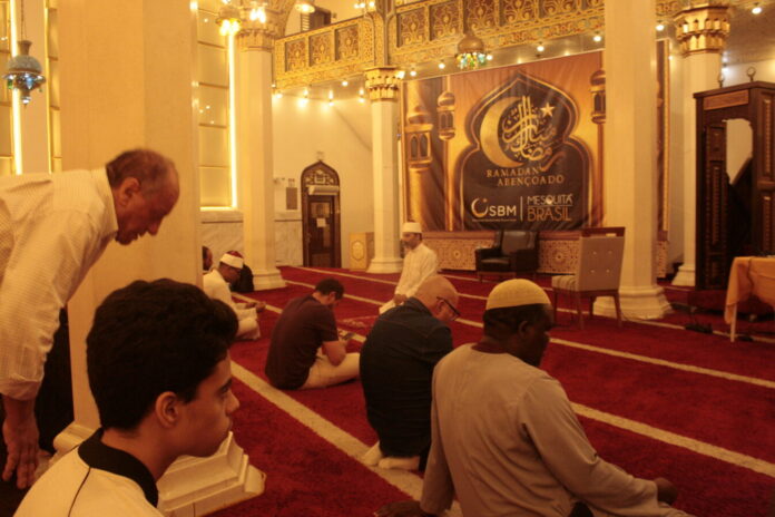 Na Mesquita Brasil — considerada a primeira mesquita construída na América Latina — centenas de fiéis participaram das orações coletivas (Salat) e aguardaram o momento do “iftar”, a quebra do jejum ao entardecer.