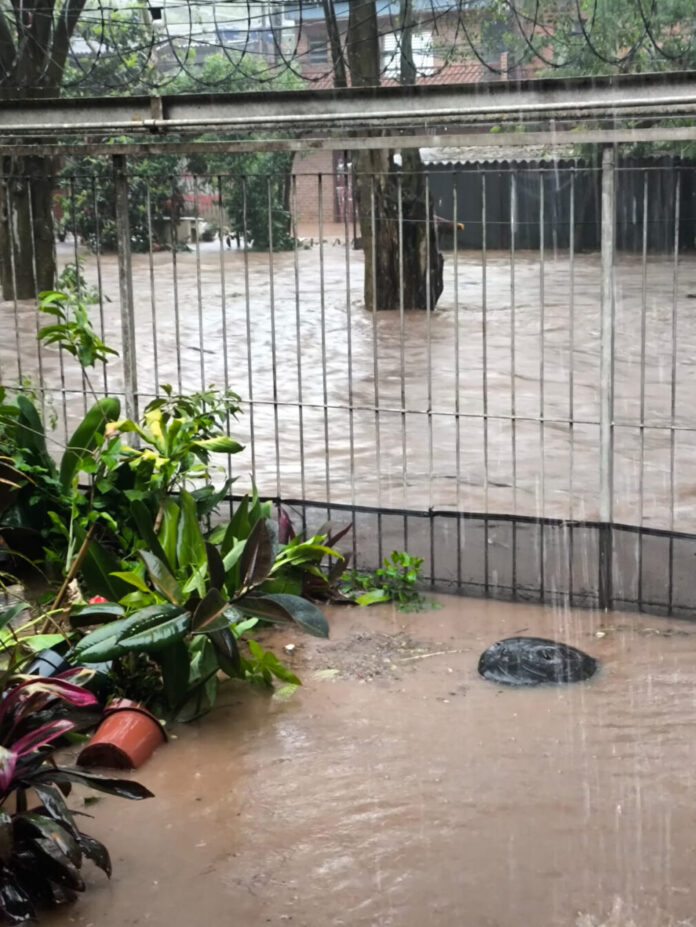 “Basta chover forte que a rua vira um rio. A água sobe rápido, traz lixo, galhos e coloca todos em risco”, relatam os denunciantes.