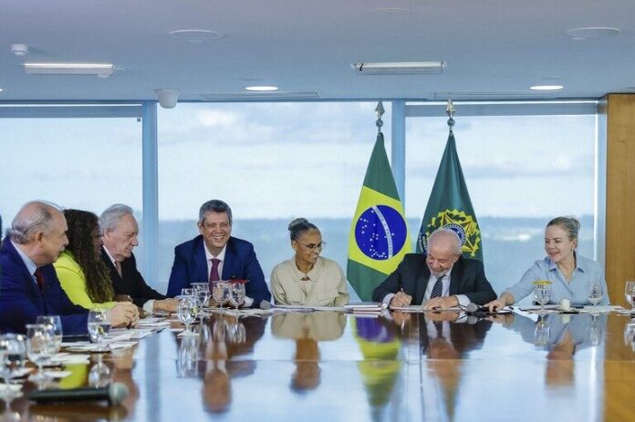 O presidente Luiz Inácio Lula da Silva assinou nesta terça-feira, 3 de junho, atos que reforçam o compromisso do Governo Federal com a preservação da natureza, em celebração ao Dia Mundial do Meio Ambiente, comemorado no dia 5 de junho. Entre os anúncios da cerimônia realizada no Palácio do Planalto, está o maior apoio financeiro da história do Fundo Amazônia: R$ 825,7 milhões destinados ao Instituto Brasileiro do Meio Ambiente e dos Recursos Naturais Renováveis (Ibama) para execução do projeto FORTFISC – Fortalecimento da Fiscalização Ambiental para o Controle do Desmatamento Ilegal na Amazônia.