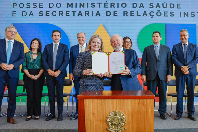 O presidente Lula deu posse a dois novos ministros do governo, na tarde desta segunda-feira (10), em cerimônia lotada no Palácio do Planalto. A ex-presidenta nacional do Partido dos Trabalhadores (PT) Gleisi Hoffmann (PR) assume a Secretaria de Relações Institucionais (SRI) da Presidência da República no lugar do deputado federal Alexandre Padilha (SP), que vai para o Ministério da Saúde (MS) em substituição à socióloga Nísia Trindade.