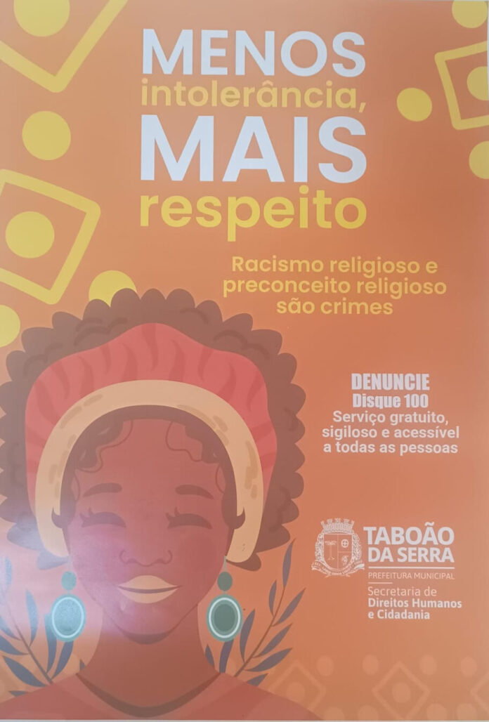 A imagem que circula nas redes e nos espaços públicos de Taboão da Serra carrega uma mensagem direta e contundente: “Menos intolerância, mais respeito”. O material, assinado pela Prefeitura Municipal por meio da Secretaria de Direitos Humanos e Cidadania, com apoio da Coordenadoria de Promoção da Igualdade Racial, não é apenas uma peça institucional — é um posicionamento político, social e histórico diante de um problema estrutural do Brasil: o racismo e a intolerância religiosa.