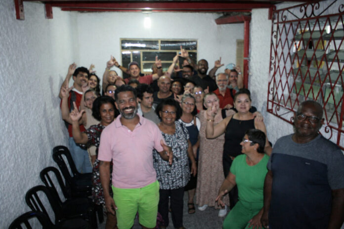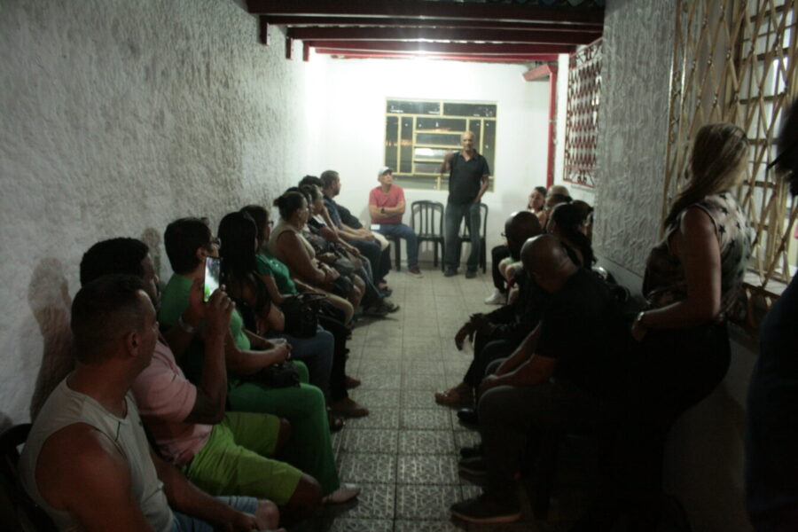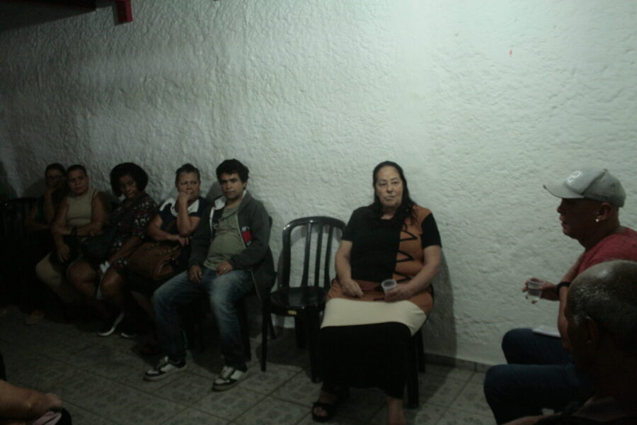 o encontro revela mais do que uma simples reunião: trata-se de um retrato vivo da organização popular. Homens e mulheres de diferentes idades, muitos com gestos de afirmação e unidade, ocupam um espaço simples, porém carregado de simbolismo — a periferia como centro do debate político.