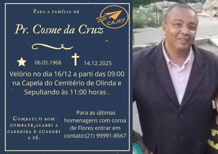 Nota de Falecimento: Pr. Cosme da Cruz