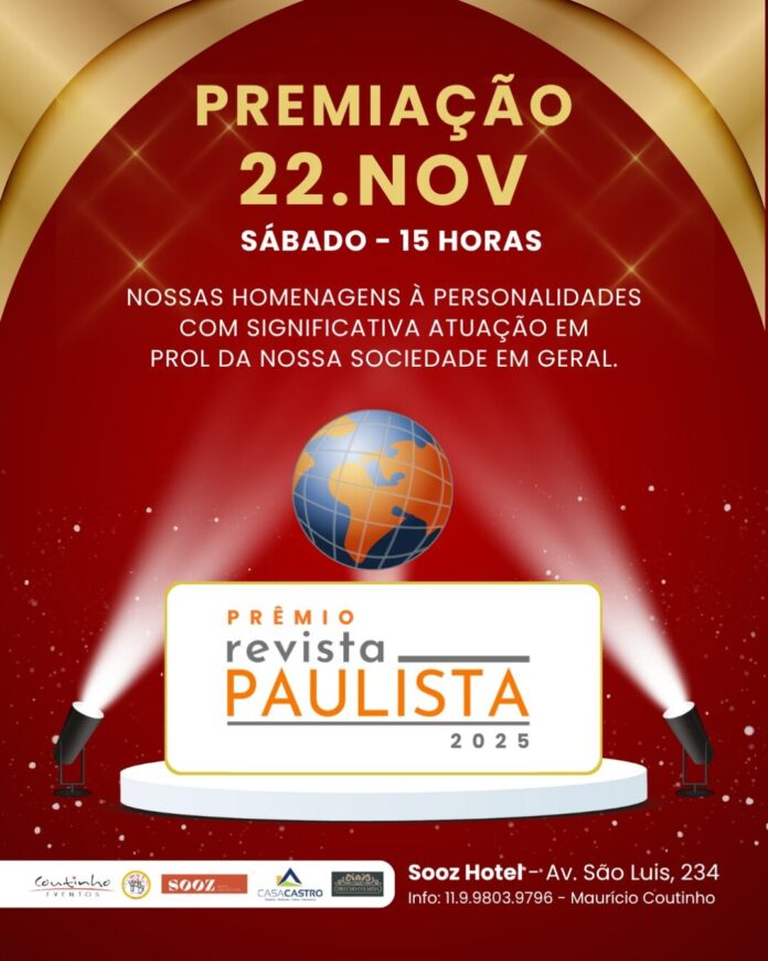 A entrega do Prêmio Revista Paulista – Edição 2025 promete ser uma tarde marcante de celebração, reconhecimento e valorização da cultura paulistana.