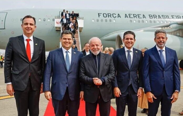 Ao sair da aeronave da Força Aérea Brasileira (FAB), Lula foi recepcionado por autoridades locais e seguiu por um tapete vermelho ao lado de membros do governo e lideranças políticas. As imagens divulgadas mostram figuras de destaque, como o presidente do Senado, Davi Alcolumbre eo Ex Presidente do Senado Rodrigo Pacheco, Presidente Lula com o presidente da Câmara, Hugo Mota e o Ex.Presidente da Camara Arthur Lira.
