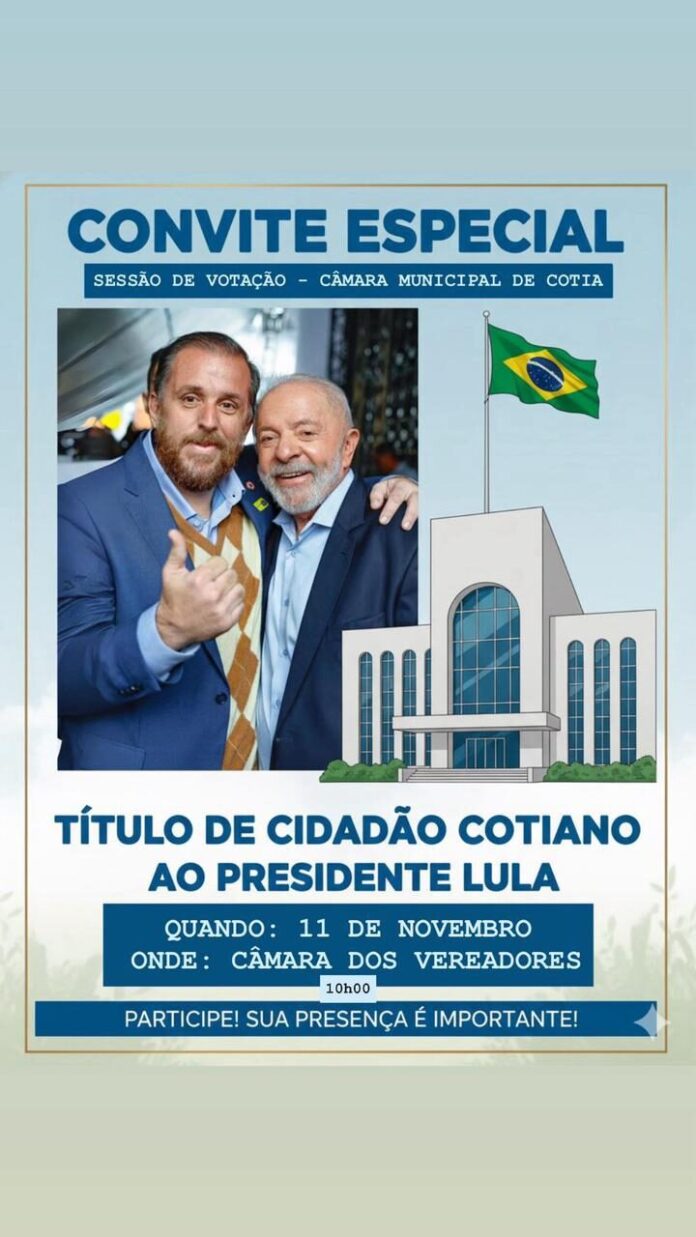 A homenagem, proposta por vereadores da cidade, reconhece a trajetória e o legado político do presidente, além de sua contribuição ao desenvolvimento social e econômico do país. Segundo os organizadores, a honraria simboliza o respeito e o carinho do povo cotiano por um dos maiores líderes populares da história do Brasil.