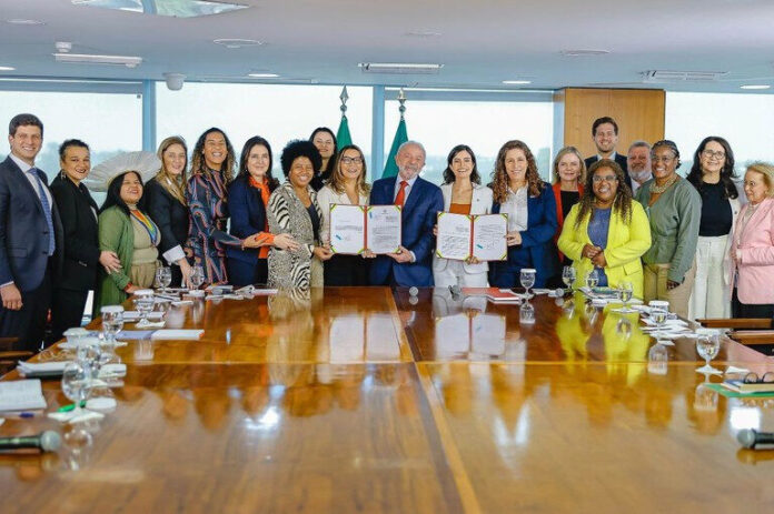 A sanção ocorreu em cerimônia no Palácio do Planalto com a participação de ministras e outras autoridades. “Já estou agraciado com a fala que as companheiras fizeram, mas eu penso que neste ato em que as mulheres conquistam um degrau a mais na luta pela participação para exercer cargos importantes em governos, em empresas públicas, que também neste dia elas prestem homenagem a uma mulher importante que se foi, a Preta Gil”, declarou Lula, ao pedir um minuto de silêncio em homenagem à cantora que faleceu no último domingo (20).