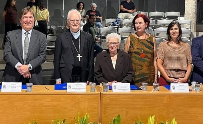 A mesa solene foi composta por personalidades ilustres, como o Cardeal Dom Odilo Scherer, o reitor da PUC-SP, Prof. Dr. Carlos Antonio Ignacio Massaro, e a professora Maria Vitória Benevides. Todos exaltaram o legado e a coerência política de Erundina ao longo das décadas.