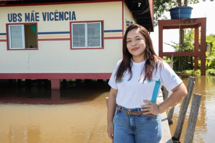 EMANCIPAÇÃO – Dayane Carvalho, de 30 anos, vive na área rural do município ribeirinho de Careiro da Várzea, no Amazonas. Integrante do Bolsa Família durante quase dez anos anos, ela atualmente trabalha na Unidade Básica de Saúde Mãe Vicência, às margens do Rio Solimões, como técnica de enfermagem, curso que concluiu com auxílio do benefício do Governo Federal. A renda fixa significou emancipação e a saída oficial do programa em dezembro de 2024.