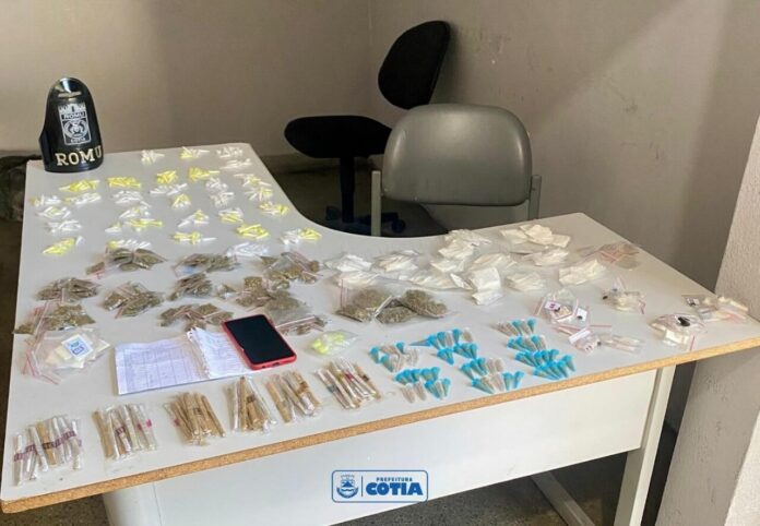 A ROMU da Guarda Civil Municipal (GCM) de Cotia apreendeu mais de 750 porções de entorpecentes, um celular e uma motoneta sem placa em uma ação de patrulhamento, nessa quarta-feira (02/04/25), na rua Pelicano, no Jardim Nova Cotia. A droga estava pronta para a venda no tráfico.