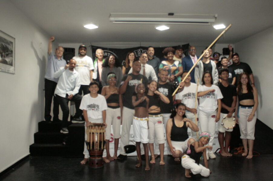 Momentos de integração cultural graças à participação do coletivode capoeira Conexão Fiel de Guarulhos, que apresentou números artísticos e conduziu uma roda simbólica representando resistência, ancestralidade e identidade. Integrantes do grupo, jovens e adultos, celebraram a força da capoeira como expressão viva da história do povo negro no Brasil.