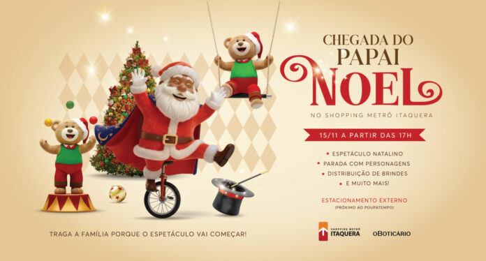 Inspirado na atmosfera lúdica e colorida do circo, o Shopping Metrô Itaquera, na Zona Leste de São Paulo, promete um Natal de encantamento, magia e solidariedade. A programação começa no dia 15 de novembro, às 17h, com um espetáculo gratuito no estacionamento do centro de compras. Durante a apresentação, artistas circenses darão vida a números de malabarismo, trapézio e mágica, culminando na chegada do Papai Noel, que “desaparecerá” do espetáculo circense e “reaparecerá” em seu trono dentro do shopping — um dos momentos mais aguardados da temporada.
